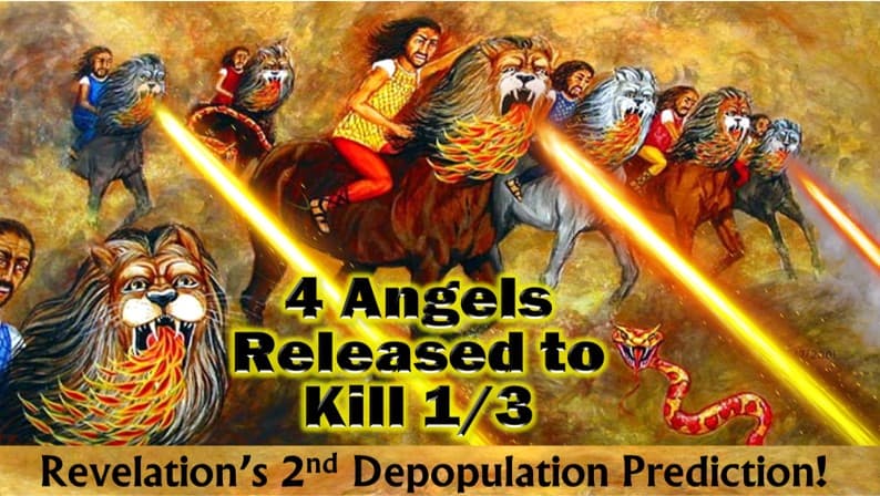 Soon God’s 4 Horsemen will ride killing 1/4 of Earth’s population! At Matthew 24:7-8, Christ called this time, “the Beginning of birth Pains” or “Sorrows.” Better repent or you will very soon find yourself a target of God’s arrows of “sword,” “famine,” “pestilence,” & “wild beasts” of the 4 Horsemen! (Deut 32:23-25, Eze 5:16-17).