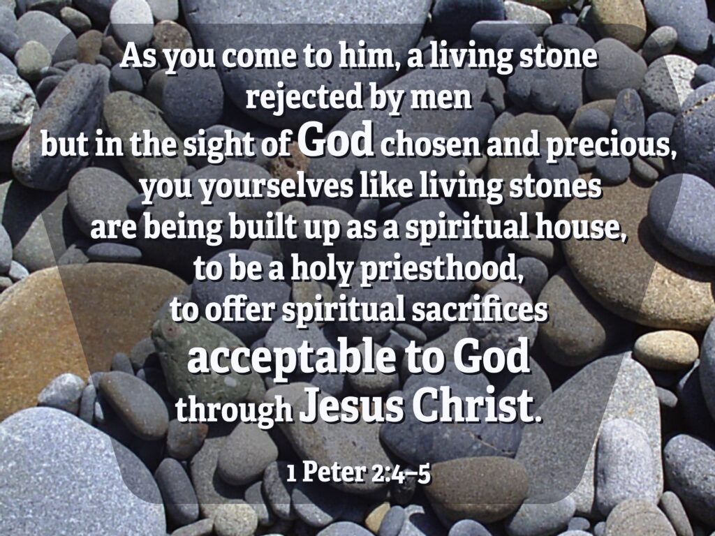 5 you also, like living stones, are being built into a spiritual house to be a holy priesthood, offering spiritual sacrifices acceptable to God through Jesus Christ.