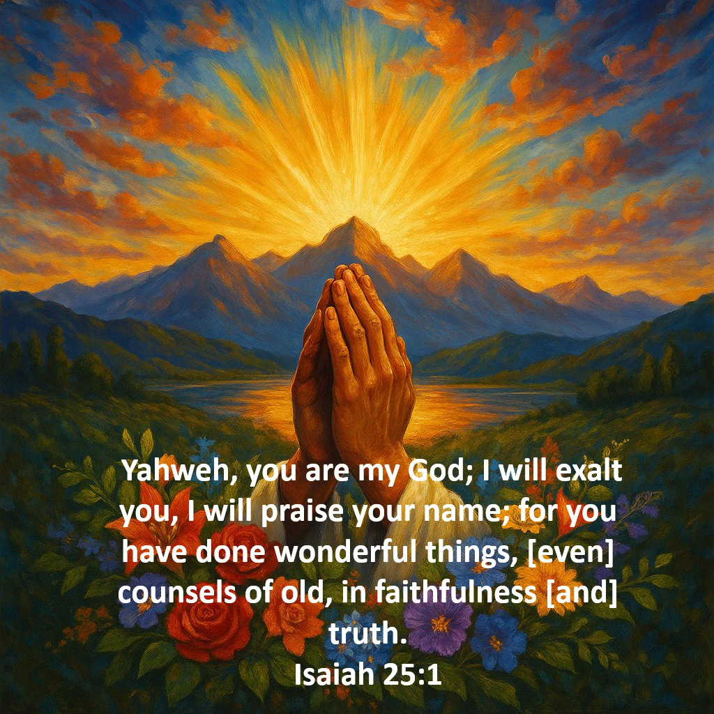 1 Yahweh, you are my God; I will exalt you, I will praise your name; for you have done wonderful things, [even] counsels of old, in faithfulness [and] truth.