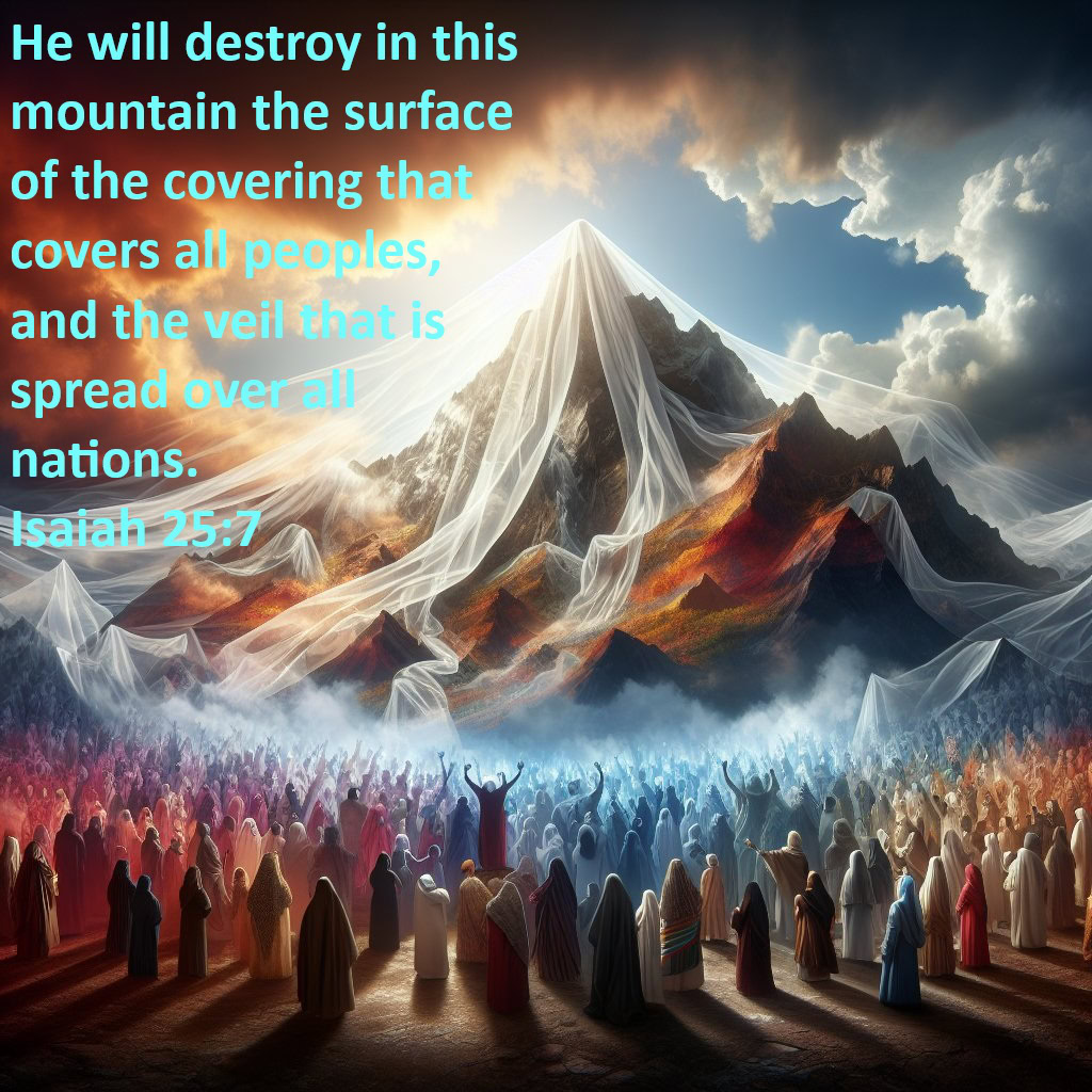 7 He will destroy in this mountain the surface of the covering that covers all peoples, and the veil that is spread over all nations.