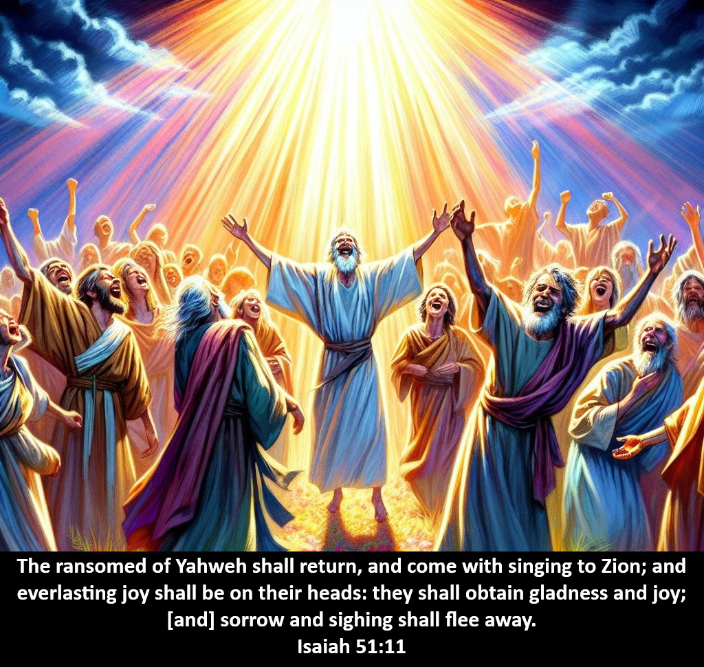 11 The ransomed of Yahweh shall return, and come with singing to Zion; and everlasting joy shall be on their heads: they shall obtain gladness and joy; [and] sorrow and sighing shall flee away.