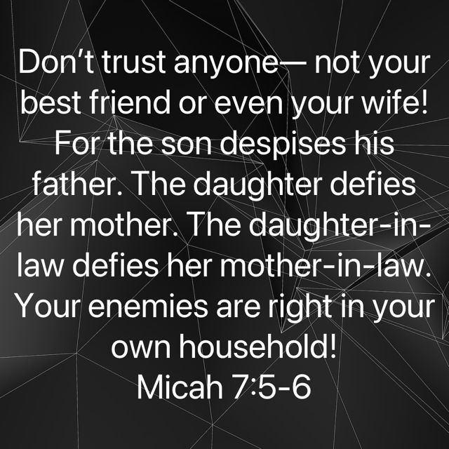 ➥ Micah 7:4-7 – Do not trust family or spouse!