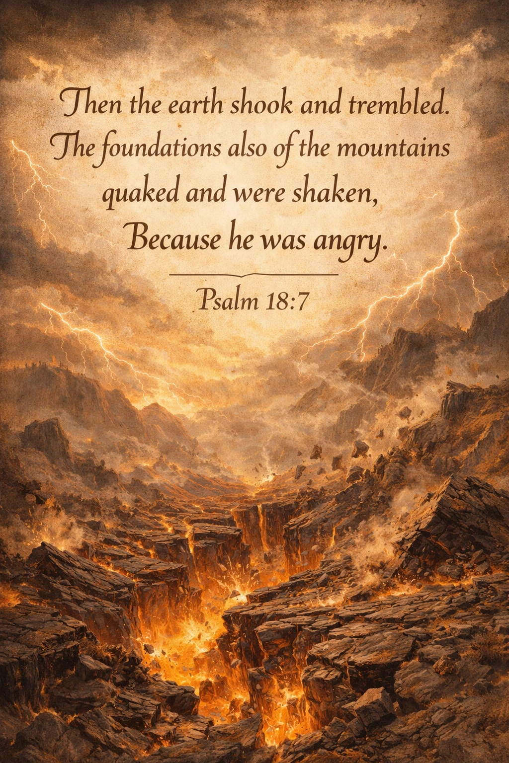 7 Then the earth shook and trembled. The foundations also of the mountains quaked and were shaken, Because he was angry.