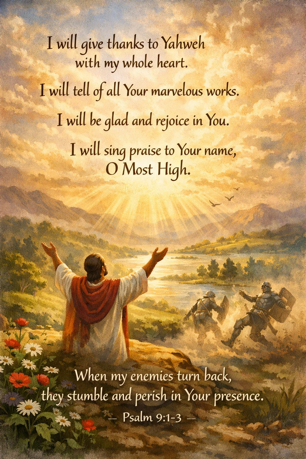 1 I will give thanks to Yahweh with my whole heart. I will tell of all your marvelous works.
