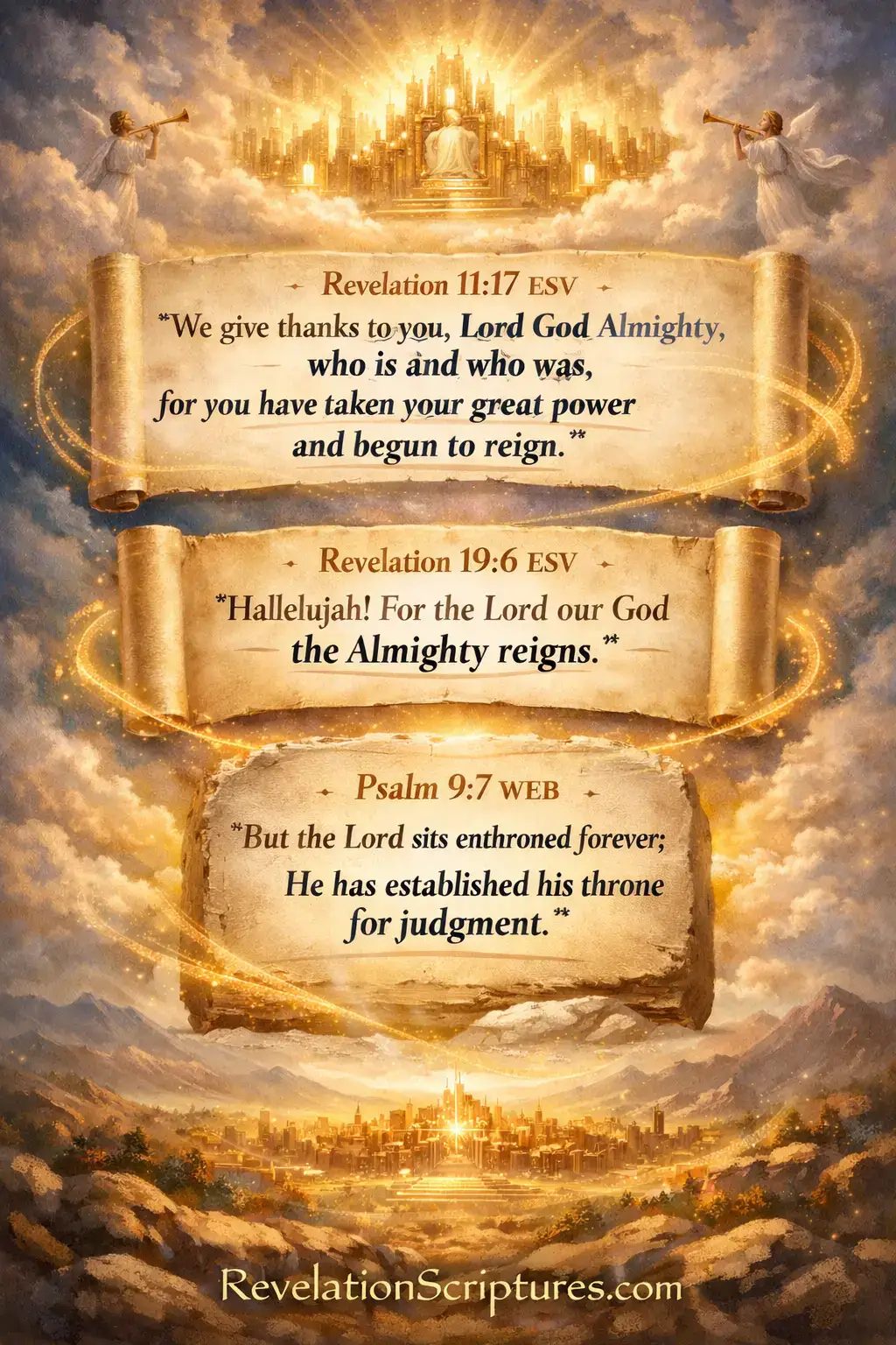 At Revelation 11:17 the Angels announce Christ “begins to reign” and at Revelation 11:6 the Angels in heaven proclaim, “the Lord our God the Almighty reigns! Psalm 9 is part of a collection of chapters throughout the Bible where God provides many more details and tells us more of the story around this time period!