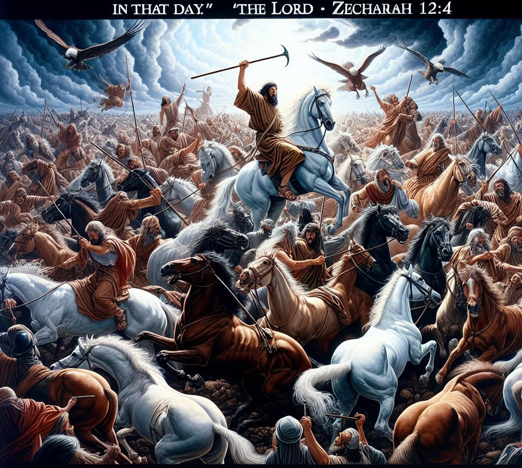 4 In that day,” says Yahweh, “I will strike every horse with terror, and his rider with madness; and I will open my eyes on the house of Judah, and will strike every horse of the peoples with blindness.